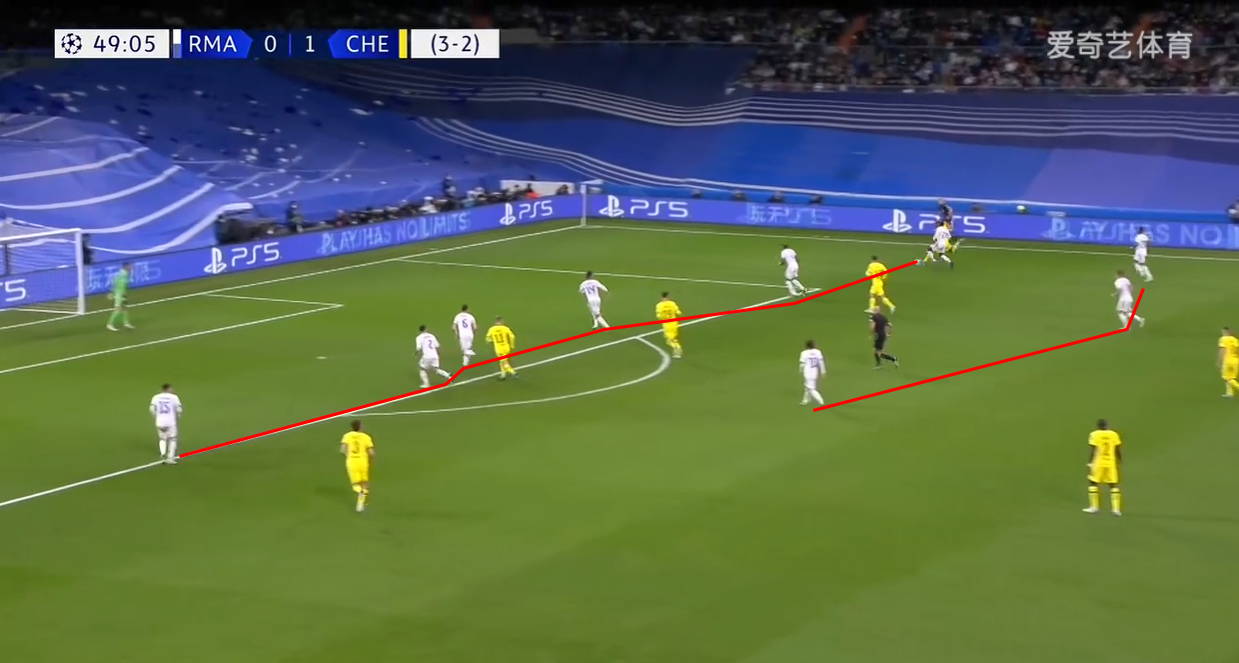 这样一来,切尔西阵地战可以打得更自如,但推进到进攻三区时又进入皇马习惯的收缩防守;皇马时常像往常一样打出反击,但防守前提也给了对手更多反击机会,然而切尔西边路推进能力下降,导致攻防转换中把握机会能力也同时下降。