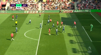 蒂45分钟,埃尔尤努西底线附近极限将球救回,贝德纳雷克小角度爆射破网!南安普顿1-0阿森纳!
