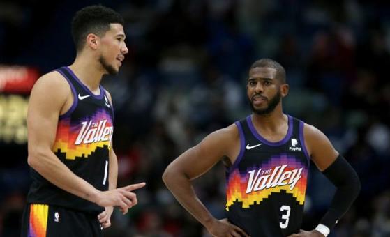 而更糟糕的是,球队主将德文-布克在第三节时疑似拉伤了腿筋,并提起退出了比赛。