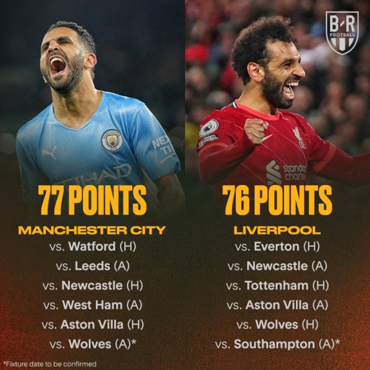 目前,2021-22赛季已经进入了最后的冲刺阶段,曼城和利物浦正为了英超冠军奖杯做最后的努力。目前,两队在32场比赛之后分局前二,曼城以1分的优势领跑,冠军最终花落谁家还是未知数。
