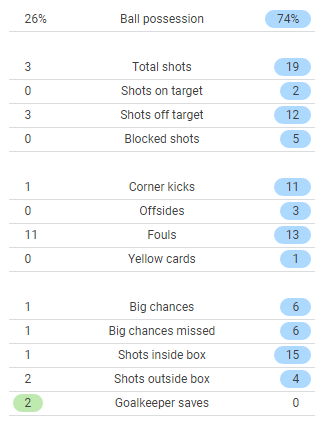 全场比赛,狮城水手19次打门2次射正,均被泰山队门将曹政化解,没能收获进球。