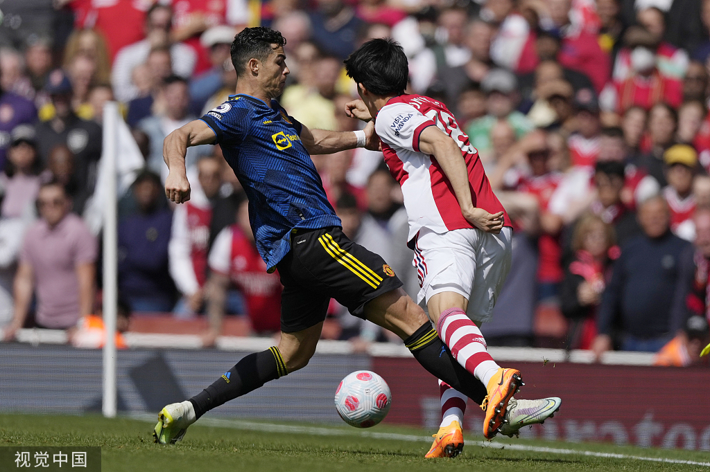 英超-C罗百球难救主扎卡世界波 阿森纳3-1完胜曼联