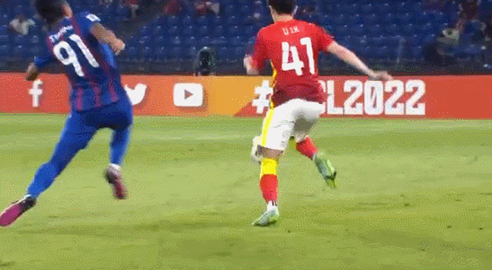 广州队本场比赛的反击做得相当有威胁,活跃在边路的李嘉灏还曾获得一次单刀直入的机会,逼得对手只能选择鲁莽的身后飞铲来阻挡。这一次反击广州队原本能够换到一张红牌的,因为对手的91号球员萨法里在身后亮出了鞋钉,不偏不倚地踹在了李嘉灏的右膝内侧,如果有VAR裁判的话,想必判罚一定会随之更改,萨法里也就会随之被红牌罚出场外。可惜的是,柔佛没有VAR。