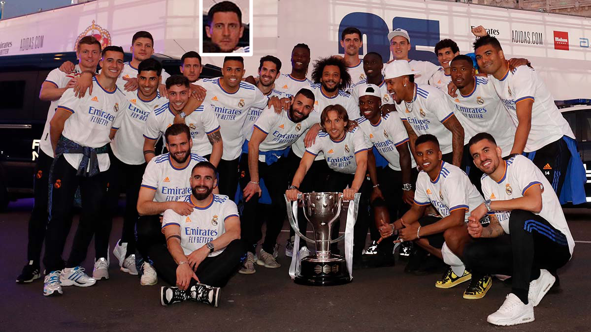 西甲联赛第34轮,皇马主场4-0轻取西班牙人,提前确定夺冠,队史第35次加冕西甲联赛冠军!在皇马官方发布的夺冠合照中,没有出现贝尔的身影,而阿扎尔尽管现身庆典,却在大合照中愁眉不展。