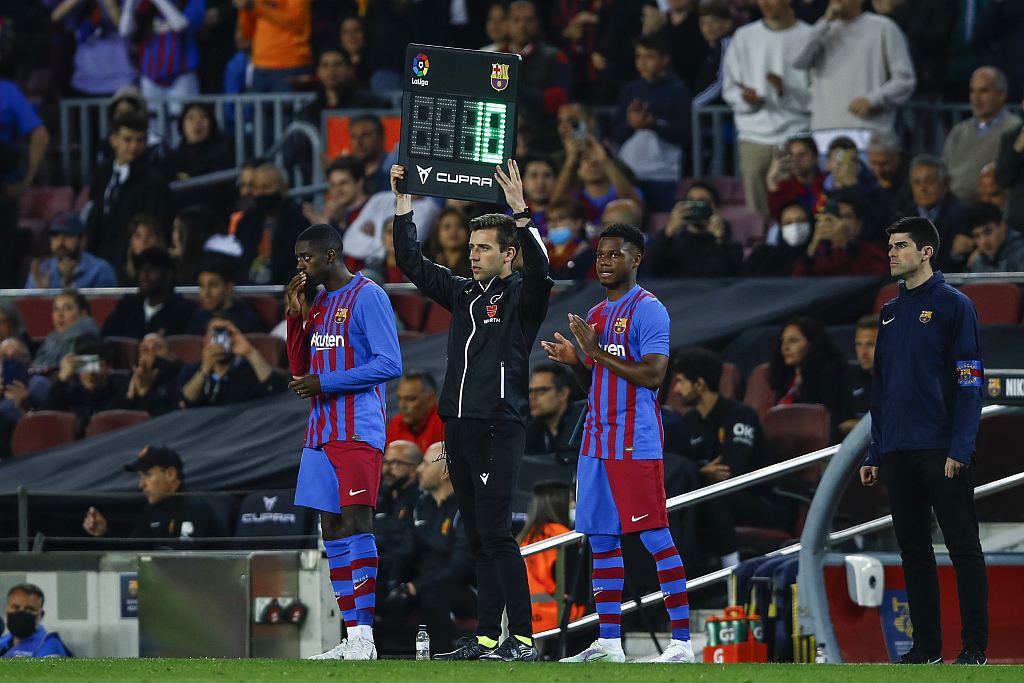 今晨西甲联赛中,巴萨主场2-1马略卡,下半场法蒂登场换下奥巴梅扬。这是西班牙小将时隔101天再度为巴萨出场,近两赛季他多次受到伤病困扰。