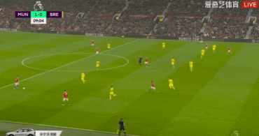 第9分钟,埃兰加下底横传,B费中路端射破门!曼联1-0布伦特福德。