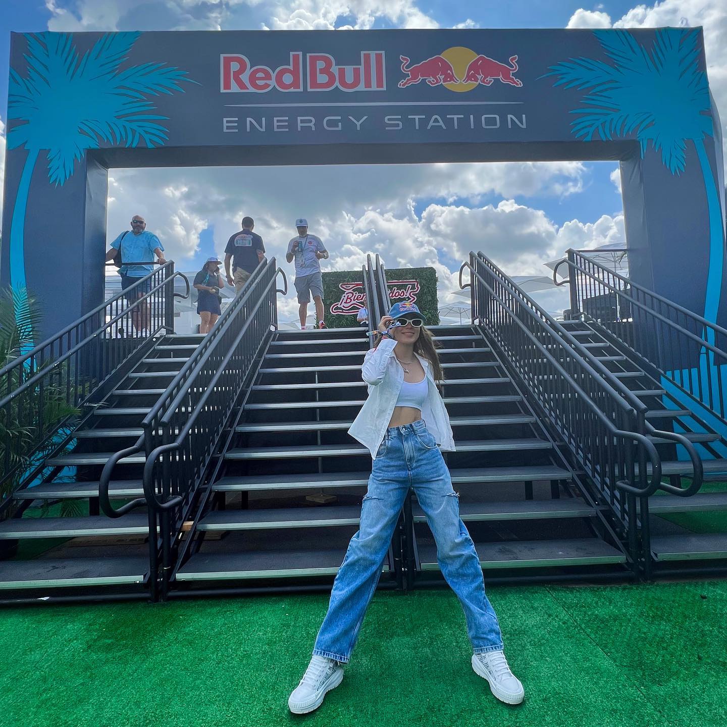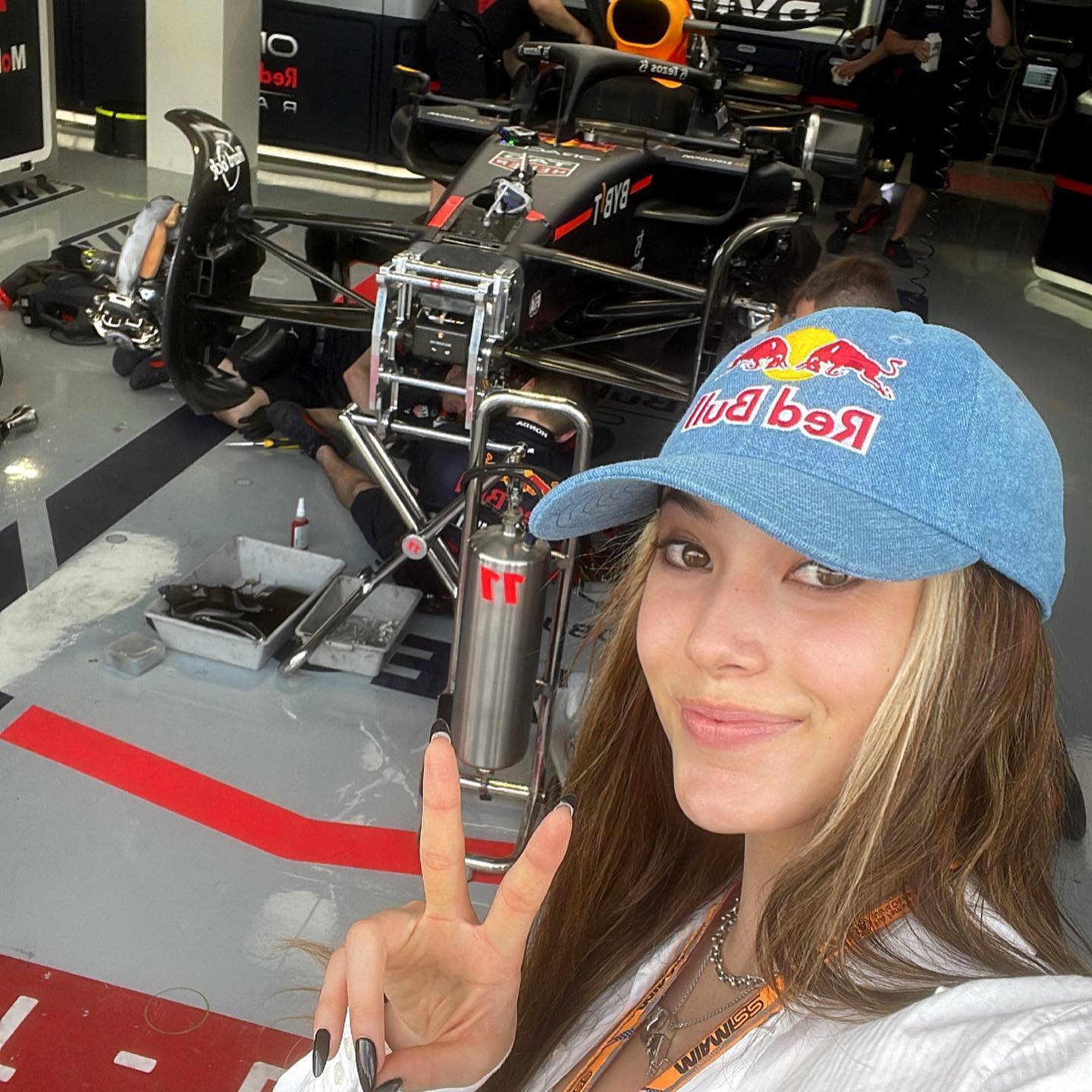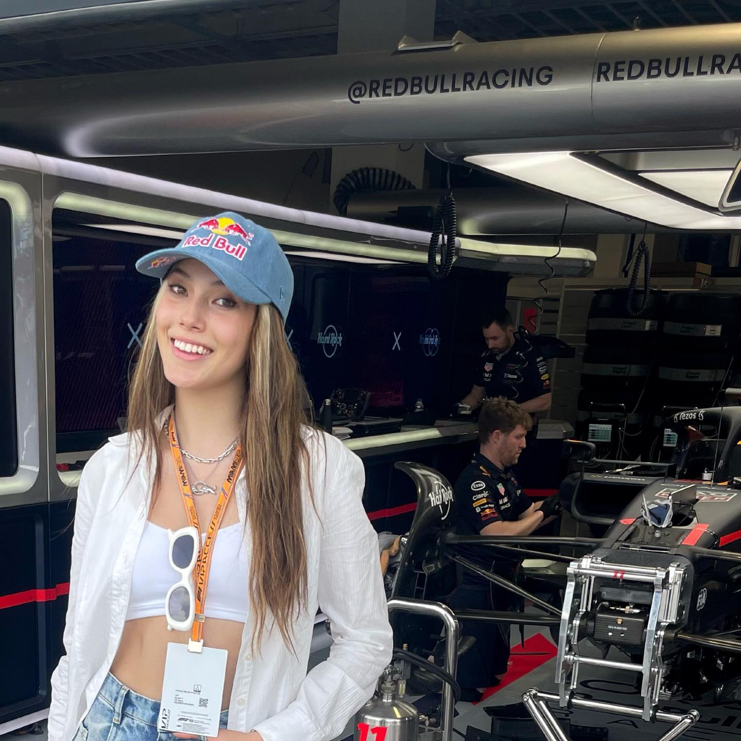 除了令人血脉喷张的赛车比赛外,此前抵达迈阿密的谷爱凌也受邀出现在了比赛现场,并且参观了红牛车队的P房。