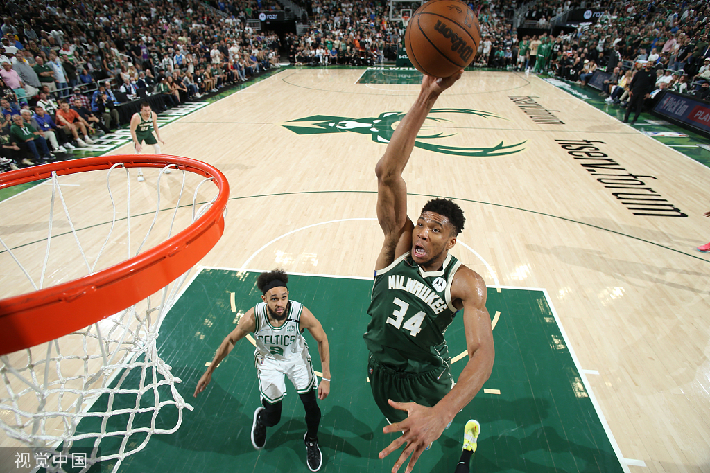 同时这也是阿德托昆博生涯季后赛第七次单场40分10篮板,相当于蒂姆-邓肯和卡尔-马龙的总和。这还是阿德托昆博生涯季后赛第七次单场超过30分15篮板5助攻,他也因此追平埃尔金-贝勒,排名联盟历史第四位,仅次于威尔特-张伯伦、卡里姆-阿卜杜尔-贾巴尔和勒布朗-詹姆斯。(图片来源:视觉中国)