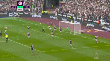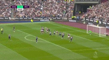 69' 马赫雷斯定位球传中,曹法尔头球解围自摆乌龙,曼城客场2-2西汉姆联!