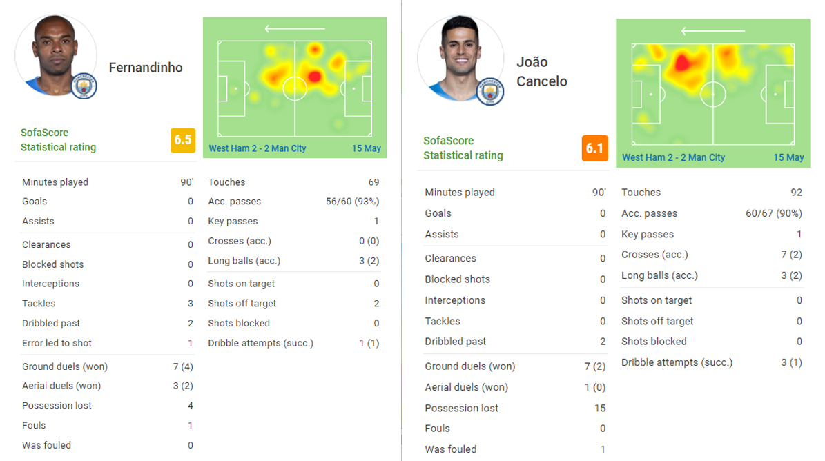 不过相比之下,拉波尔特与津琴科两名球员的表现还是合格的,这也是两名球员获得相对较高评分的原因。而曼城防守右半扇的两名球员费尔南迪尼奥与坎塞洛的表现着实是不及格。