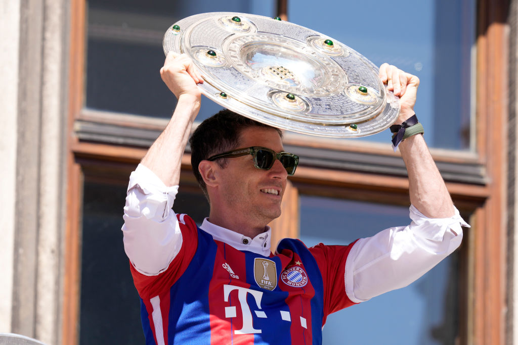 |另有深意?莱万身穿红蓝战袍现身拜仁夺冠庆典