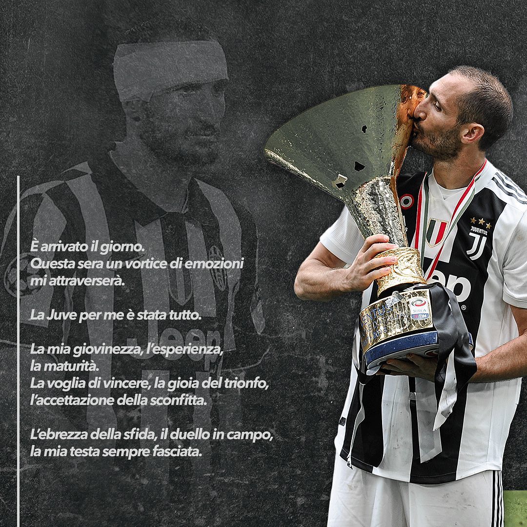 这一天还是来了,今晚,我的内心肯定无法保持平静。尤文对我来说就是一切。尤文图斯代表着我的青春,我的生涯,我在这里成熟和成长。这里代表着对胜利的渴望,你会体验到胜利后的喜悦,但在失利后我们也会接受。我们经历着挑战的快感,经历着球场上的决斗,我一直都为尤文图斯全力以赴,为此我的头上总是缠着绷带。