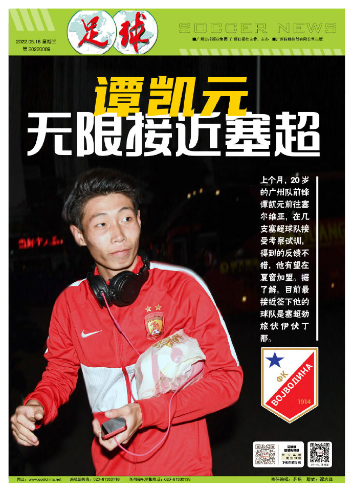 北京时间5月18日,据《足球报》报道称广州队小将谭凯元接近前往塞尔维亚超级联赛效力。