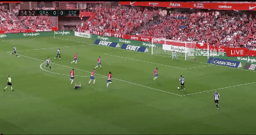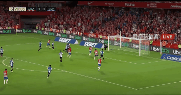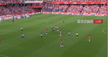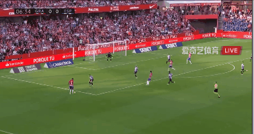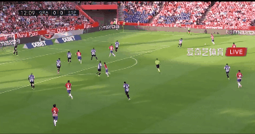 比赛第26分钟,格拉纳达队边路传中险些飞入球门!