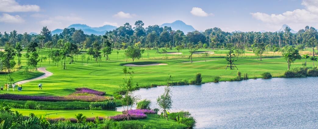 水岸球场于 2014 年开放,球道长达 7400 码,围绕独特的水道和平缓的地形设计,是个63 洞的综合体,由暹罗汽车公司拥有,位于曼谷以南约 130 公里处。