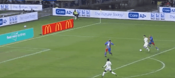 比赛第46分钟,澳超全明星队一脚威胁不大的直塞球造成巴萨防线手忙脚乱,皮斯科波轻松补射得手,澳超全明星1-1巴萨!