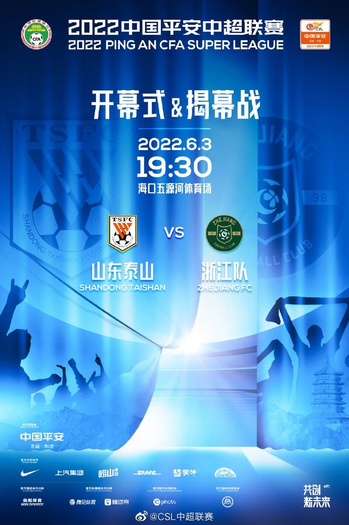 北京时间5月27日,中超联赛公布了揭幕战的时间以及对阵。揭幕战将由山东泰山对阵浙江队,比赛将于6月3日19:30进行。