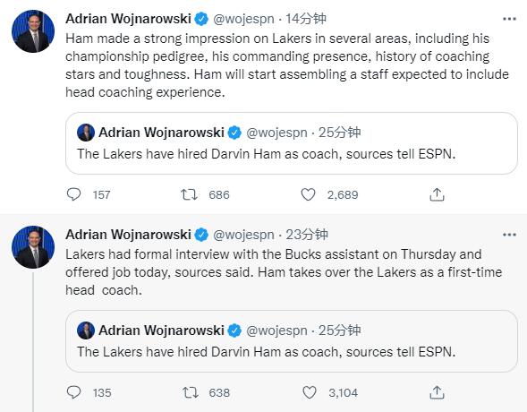 报道称,汉姆在面试的过程中,他的一些方面给湖人留下了深刻的印象,包括他的冠军血统,他的指挥能力,威严以及执教明星球员的履历。