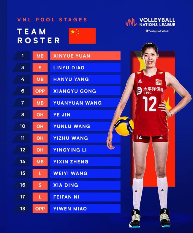 副攻:袁心玥、杨涵玉、王媛媛、郑益昕