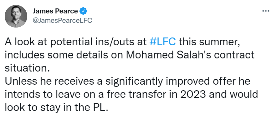 根据 The Athletic记者的报道,萨拉赫表示如果自己离开利物浦,他将更希望留在英超联赛。在这条新闻被传播开后,红军球迷们的怒火也彻底被点燃了。他们纷纷在社交媒体上表达了自己对萨拉赫的不满。