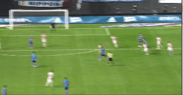 比赛第81分钟,镰田大地禁区内连过数人后打门被罗哈斯扑出,前田大然面对空门却将球打高!