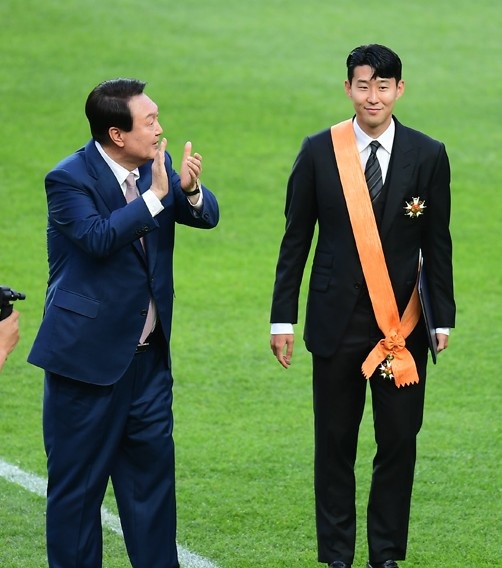 在英超联赛结束后,效力于热刺的孙兴慜返回韩国。韩国总统尹锡悦向他颁发了象征着韩国体育界最高荣誉的青龙勋章。
