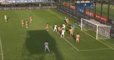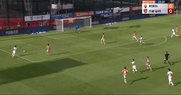 开场不到一分钟,金敃友底线处巧妙过人送出传中,费利佩头球稍稍顶偏!