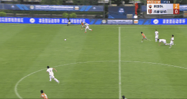 比赛第87分钟,小将孟俊杰获得得分良机,可惜把球停在了支撑脚上。