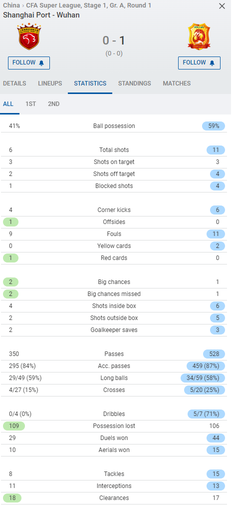 本场比赛中,武汉长江队拿到了两张黄牌,而上海海港队阵中的国脚徐新因为一次鲁莽的飞踹动作吃到了红牌。在上半时尾声阶段,徐新争顶落地时伸脚踹倒胡靖航,使得海港队在超过半场的时间里都要面对少打一人的不利局面。而最终,人数上处于劣势的海港队送给对手一次角球机会,武汉外援后卫维亚纳将皮球顶进大门,比分也就定格在了0-1。