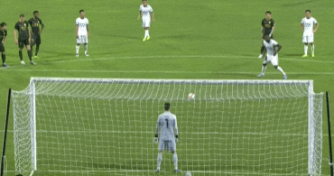 第74分钟,朴世豪禁区内与阿德本罗接触后倒地,主裁判罚点球!奥斯卡轻松主罚命中!北京国安0-2沧州雄狮。