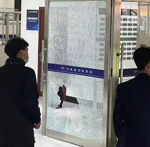 而吃到红牌后的徐新,疑似踢碎了金州体育场球员通道的大门。而球员通道大门的隔壁则恰好是VAR操作室。