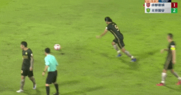 第11分钟,晋鹏翔外围远射,皮球打在防守球员身上折射入网!成都蓉城0-1北京国安。