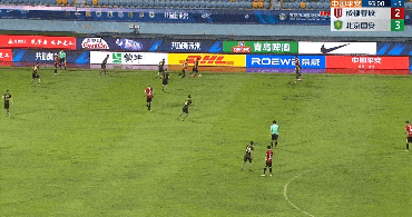 此后,此前难获比赛机会的国安中卫晋鹏翔铁树开花,一脚逆足远射变线入网。