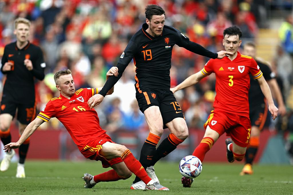 2022/23赛季欧洲国家联赛A级别D组第2轮——威尔士1-2不敌荷兰遭遇2连败:上半时,哈里-威尔逊的头球攻门和任意球兜射连续制造险情,诺林顿-戴维斯甩头攻门高出横梁。下半时,库普梅纳斯接到斯豪滕助攻于禁区线上低射贴地入网先声夺人,诺林顿-戴维斯补时阶段头槌破门一度扳平比分,但韦格霍斯特读秒头球冲顶攻入神奇绝杀>>