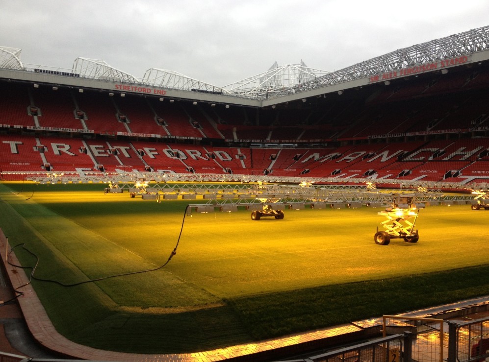 离开博物馆,在球场导游的带领下,终于能进入老特拉福德球场看台了。这对于很多不能看球的游客来说,也许是最激动的时刻。十多年来,有多少美好和难过的记忆就发生在你眼前的这块草坪上。想想吉格斯已经在这块草坪上面奔跑了20年;鲁尼曾经不远处打入一粒惊天倒钩,帮助曼联击败曼城;贝克汉姆的圆月弯刀早已不见,但漂亮弧线后球迷山呼海啸般的欢呼声似乎还在球场里回荡。球场里几台巨大的人工阳光照明设备会每天模拟日照8小时,从而保证草坪的质量。