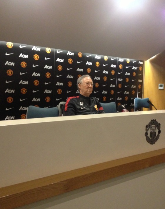 离开球场的下一站,便是媒体中心和新闻发布会厅。每当比赛日,这里便会被来自世界各地的记者挤得水泄不通。平时在这里紧张工作的我今天以游客身份参观,感觉格外轻松。不过在新闻发布会厅,弗格森爵士的蜡像还是把我吓了一跳,这是我第一次看到“他”出现在这里。之前在大屏幕前播放了很多段弗格森爵士在赛后的新闻发布会的录像,导游告诉游客们谁母语不是英文?如果你听不懂弗格森的讲话,那太好了,因为其实他们也听不懂。