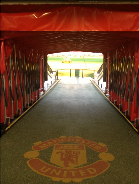 离开更衣室,终于,终于,我们要进入球场了。这段不到20米的球员通道不知道是多少小球员毕生的梦想。同时也是一条通往荣誉的道路,每一个走在这条通道里的曼联球员都重负在肩,当然也是梦想实现的时刻。梦剧场就在前面,触手可及。而这个时候,导游打开了球场背景音乐,在球场DJ的介绍下,游客们体验了一把英超球员入场的感觉。说实话,笔者当时心情激动得几乎泪流满面。