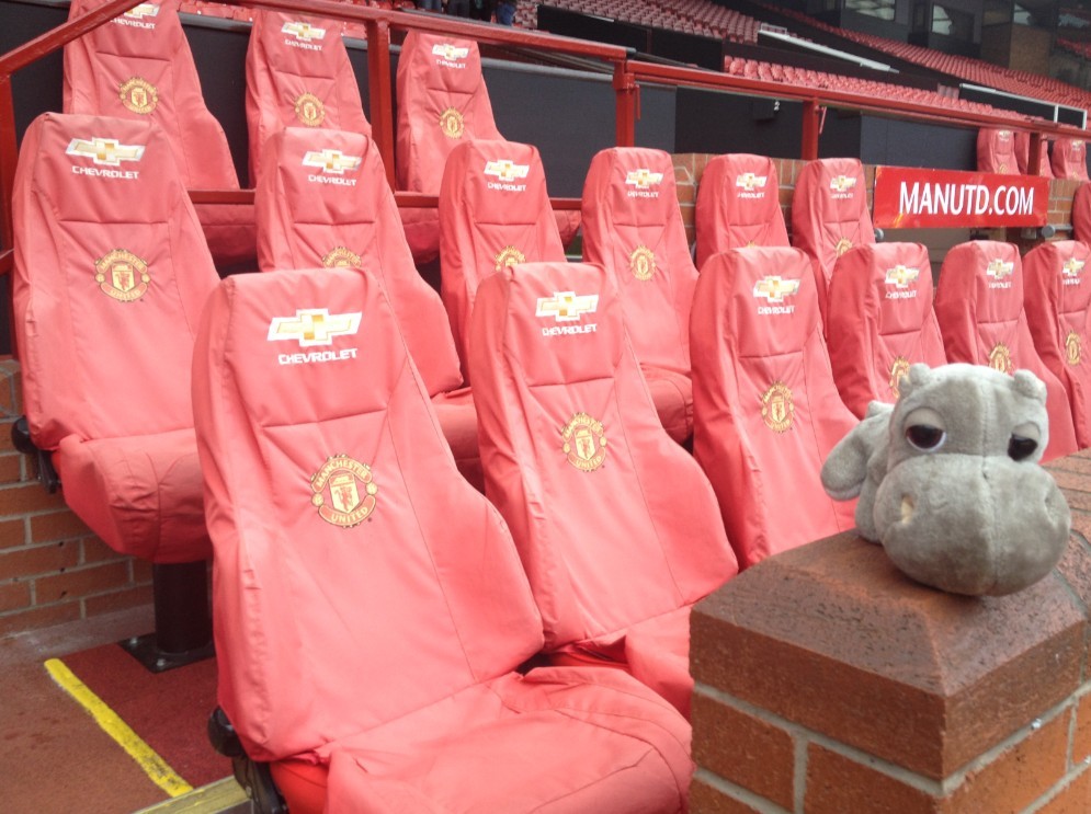 当然我们不能踏入草坪,而是径直走向替补席位。最上面左边的那个位置,属于梦剧场的现在的总指挥家------莫耶斯。可惜如今曼联战绩不佳,在场边焦急的莫耶斯也很少出现在座位上。