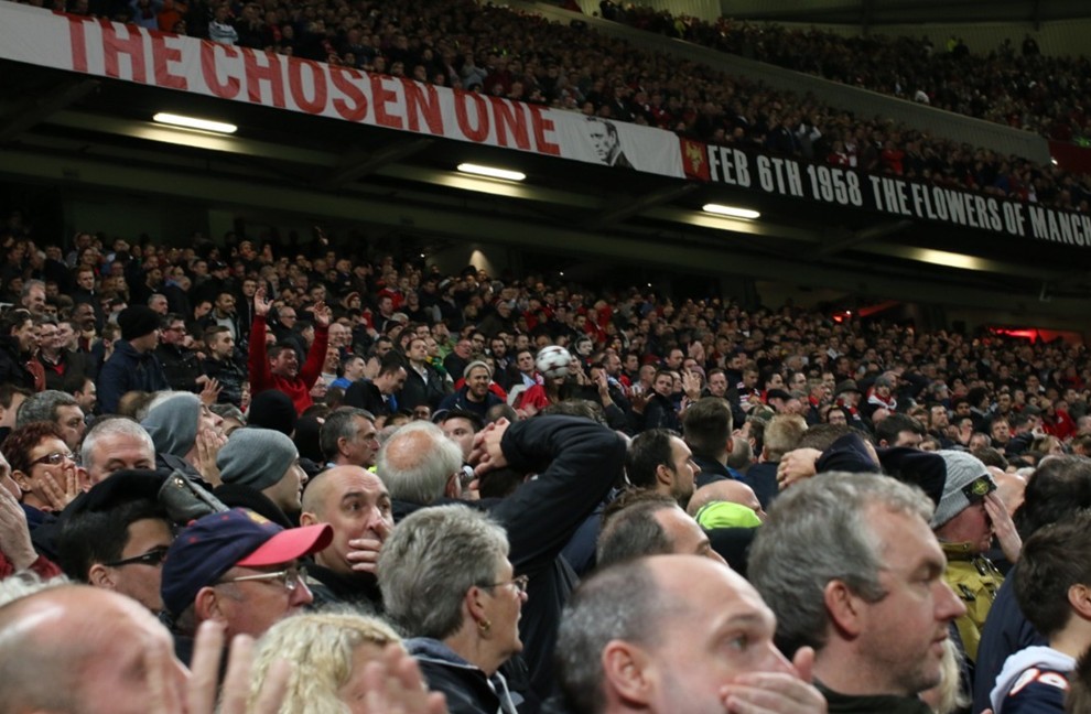 之前我曾经抱怨在弗格森看台和主看台的球迷在看球过程中都过于安静,基本上没有什么声音。今天来到这边,顿时感觉气氛不同。全场大多数时间里球迷都是站着看球,包括年老的女球迷。整场比赛,球迷都100%的投入其中。这里的歌声是最嘹亮的,这里的掌声是最热烈的,当然这里的球迷也是最忠诚的。一般来说,获得这里球迷的支持,就等于获得整个曼联球迷的支持。
